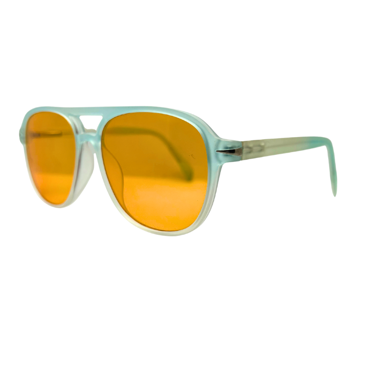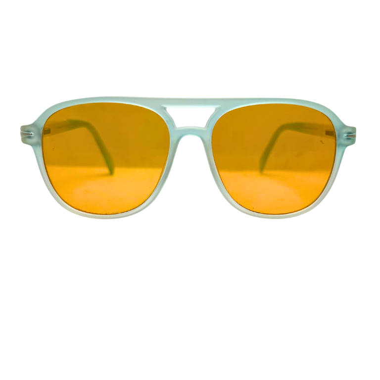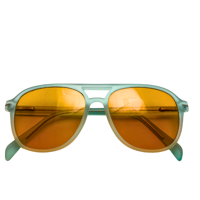 Turn heads with Midnight Frame, a bold statement in translucent blue and amber. These sunglasses blend vintage charm with modern edge, crafted for those who move through life with quiet confidence and unmistakable style.